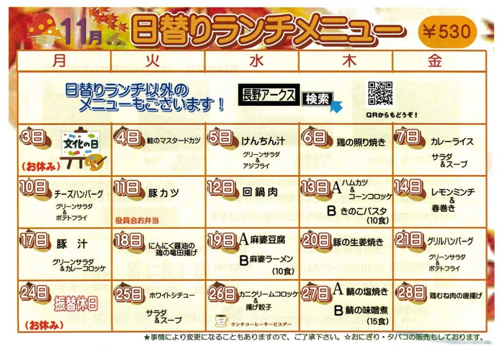 11月4日(火)の日替わりランチ